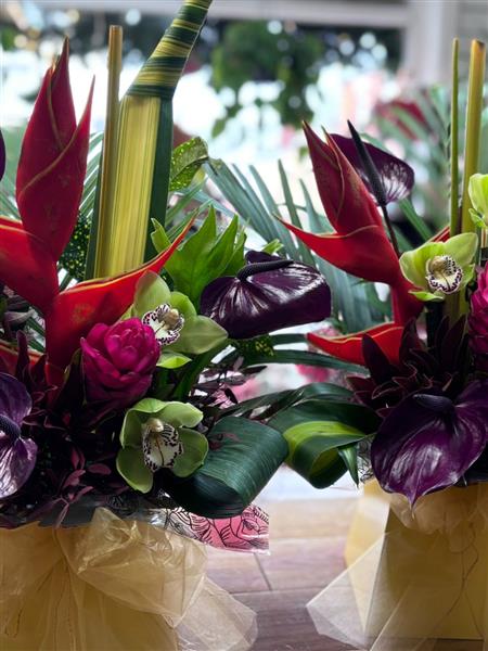 This bright tropical arrangement is bursting with bold colour, vibrant energy, and feel good sunshine vibes. Inspired by exotic blooms and lush, tropical tones, it’s designed to instantly uplift any room and make a statement without saying a word. Made with long lasting flowers, it brings extended enjoyment as well as beauty, making it perfect for celebrating, cheering someone up, or sending a little slice of summer straight to their door. Fun, fresh, and full of life, this arrangement radiates happiness, warmth, and pure joy.