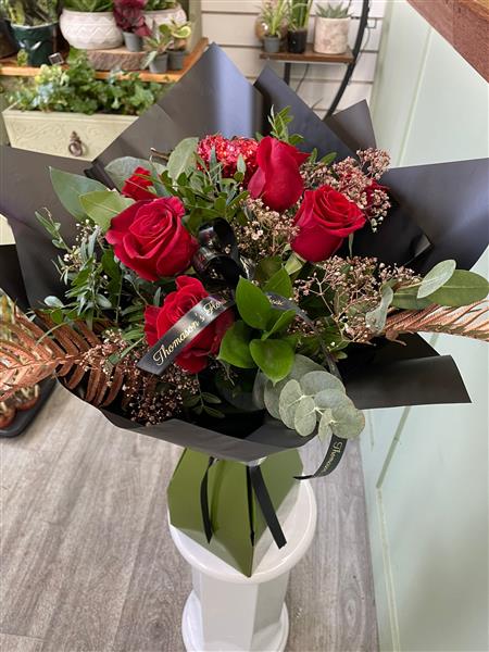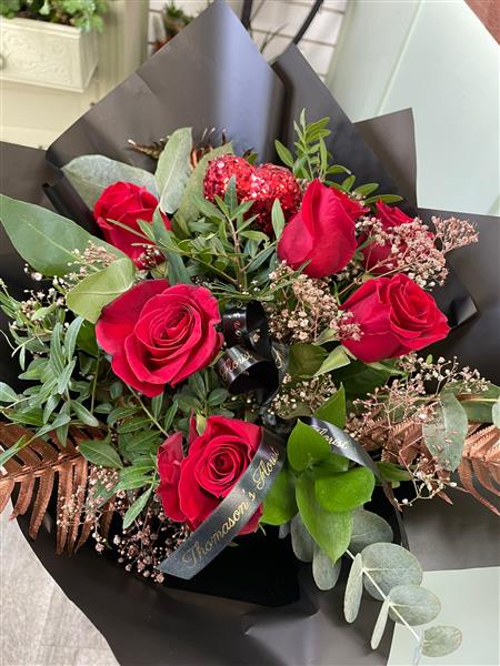 This Valentine’s Day, Half a dozen Freedom Red Roses are presented in a sleek black wrap, nestled in a premium box. The rich crimson blooms, known for their velvety petals and perfect symmetry, exude elegance and passion. Finished with a satin ribbon, this sophisticated bouquet is a stunning, luxurious gift that makes a bold statement of love.