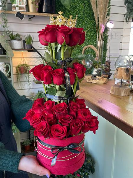 What a princess! What woman wouldn’t adore receiving this stunning three-tier rose display on Valentine’s Day? Crafted with A-grade premium roses and topped with a beautiful crown, it’s a gift fit for royalty and sure to leave a lasting impression.
