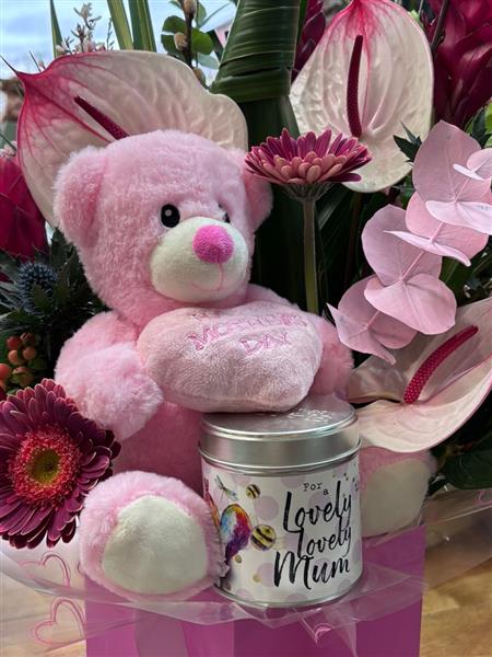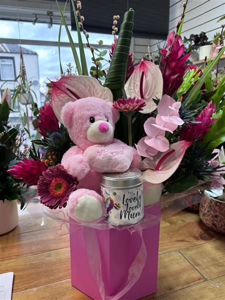Long lasting Tropical pinks inc candle and bear